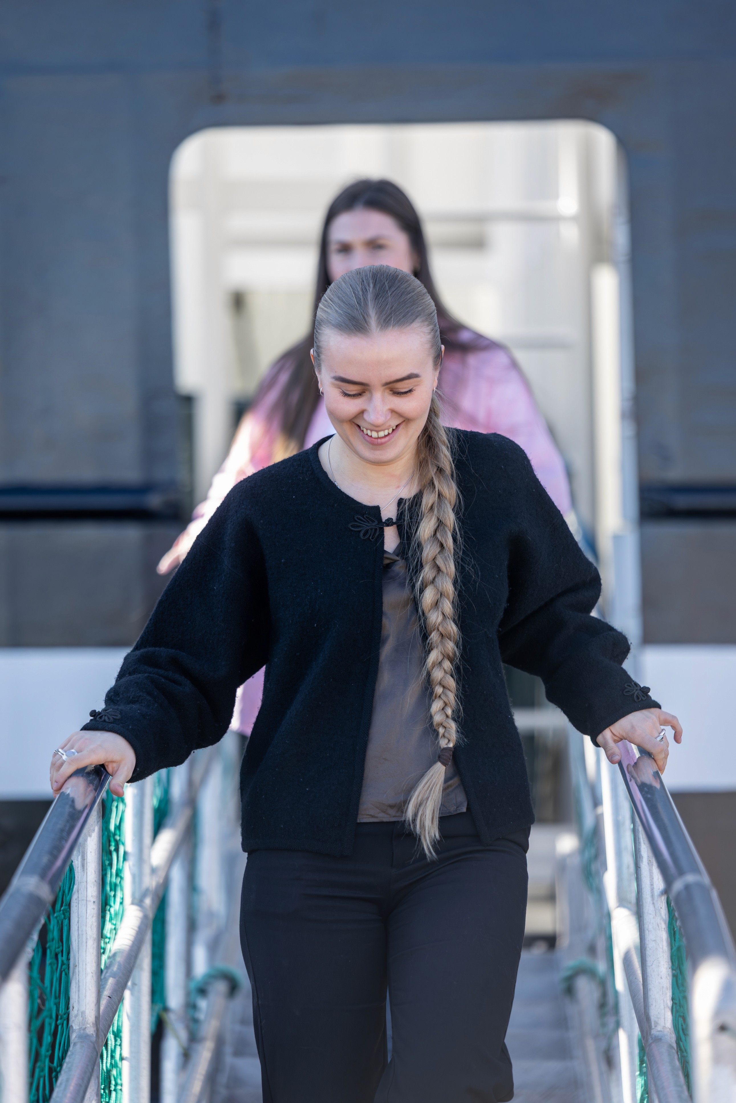 Leonora Rimestad på vei ned fra ombordbesøk på Strand Senior. Foto: Anne Marthe Vestre Berge.