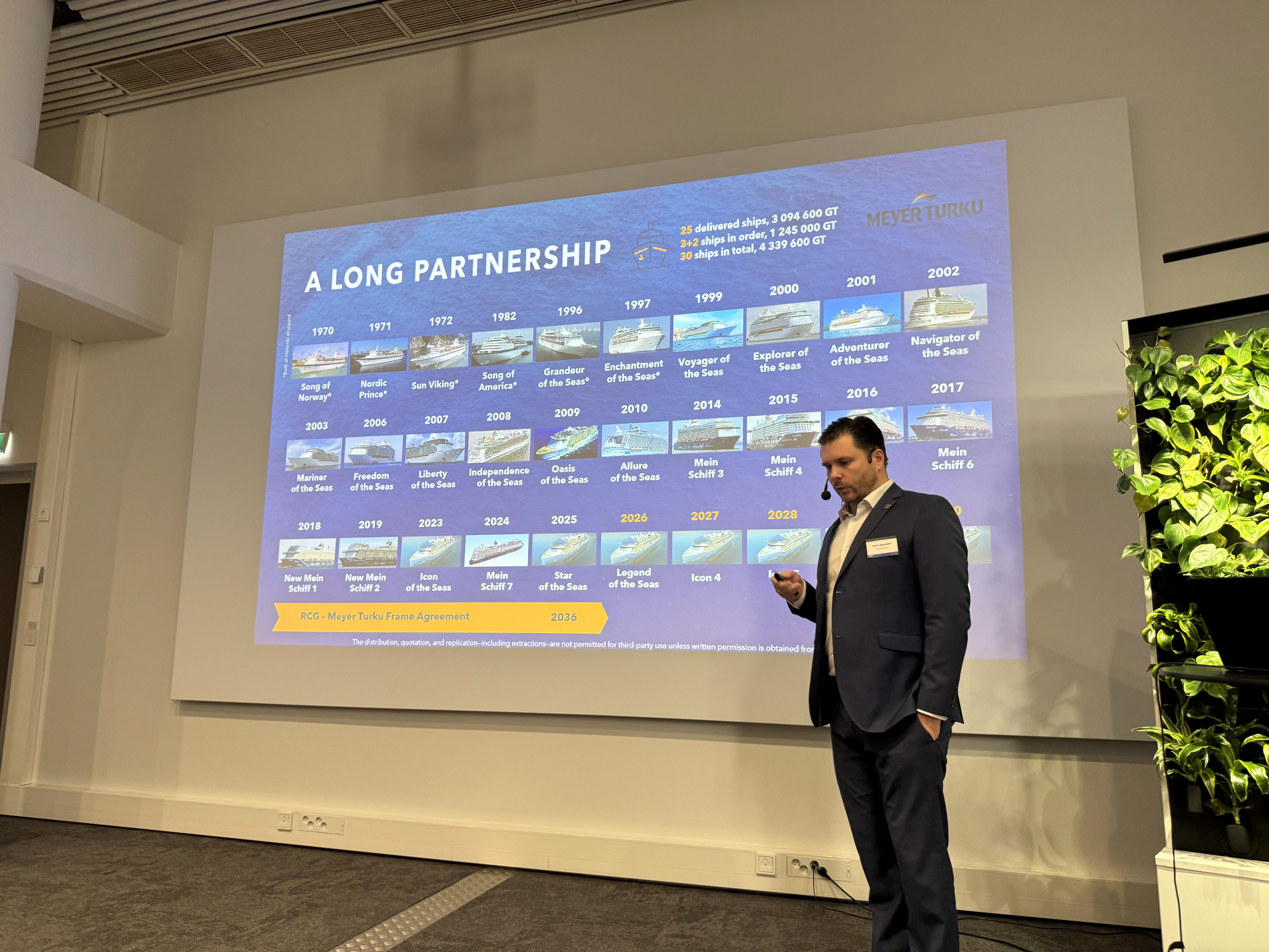 At the same time, the industrial context in Turku is shaped by long-term relationships between yards and major cruise operators. Meyer Turku’s collaboration with Royal Caribbean Group, with shipbuilding contracts (including options) secured until the mid 2030s, illustrates how future vessel development for the cruise market is anchored in long-term industrial partnerships.
